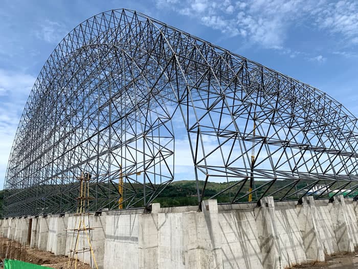 (2)绵竹网架加工前应对现场尺寸进行复测,确认无误后方可进行加工、安装;网架制作、运输、安装应遵守《空间网格结构技术规程》JGJ7-2010、《绵竹钢网架绵竹螺栓球节点》JG/T 10-2009、《绵竹钢网架绵竹螺栓球节点用高强度螺栓》 GB/T 16939-2016、《钢结构工程施工规范》 GB50755-2012、《钢结构工程施工质量验收标准》 GB50205-2020。